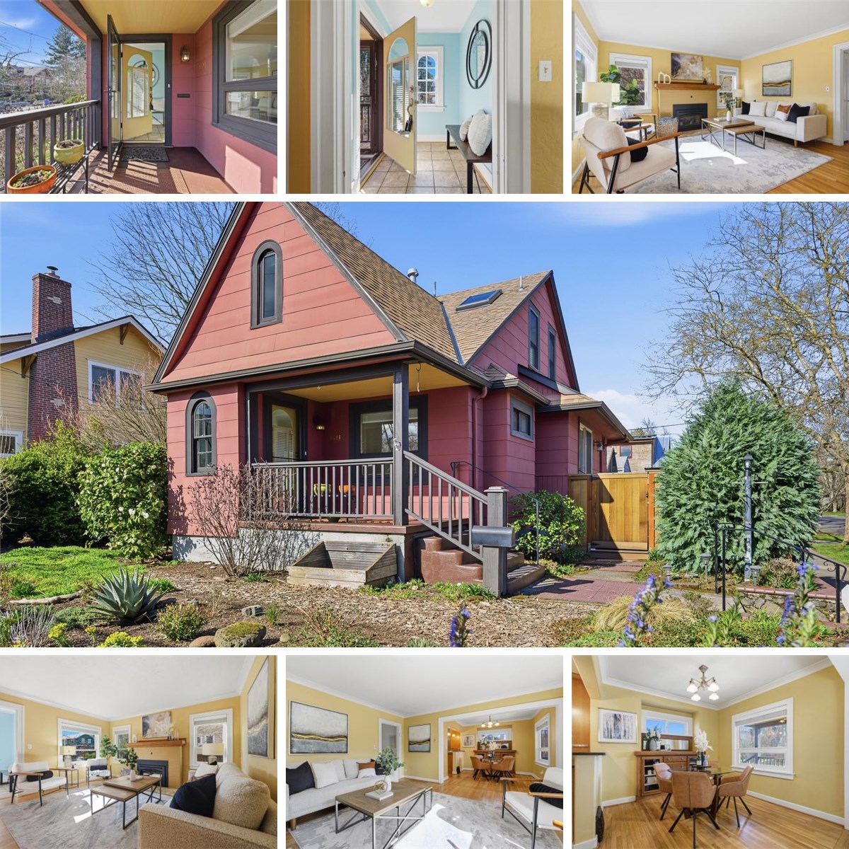 Welcome to this enchanting Storybook English Cottage on a quiet treelined street in the heart of Sellwood. This charming home blends timeless character with modern updates in one of Portland’s most sought-after neighborhoods. Just minutes from New Seasons, Grand Central Bakery, Starbucks, boutiques, and more. Inside, classic details feature hardwood floors, crown molding, wainscoting, arched leaded-glass window, French door, and built-ins. The spacious floorplan is perfect for entertaining, featuring a cozy living room with gas fireplace, formal dining, and updated kitchen with stainless steel appliances, granite counters, skylights, and sliding doors to the deck. The private primary bedroom features skylights, mini-split system for year around comfort, oversized walk-in closet, and bathroom with skylight. Flexible main-level bedrooms open to the deck and make the perfect home office or guest bedroom. The partially finished basement with egress window offers potential for 4th bedroom or family room. Utility room with washer and dryer and lots of storage space. Andersen windows, fenced corner lot with new Trex deck, fence, and detached garage with ADU potential. Sellwood offers a blend of convenience, charm, and community. Just minutes from downtown Portland and OHSU, with a Walk Score of 95 and Bike Score of 99, this location truly can’t be beat.