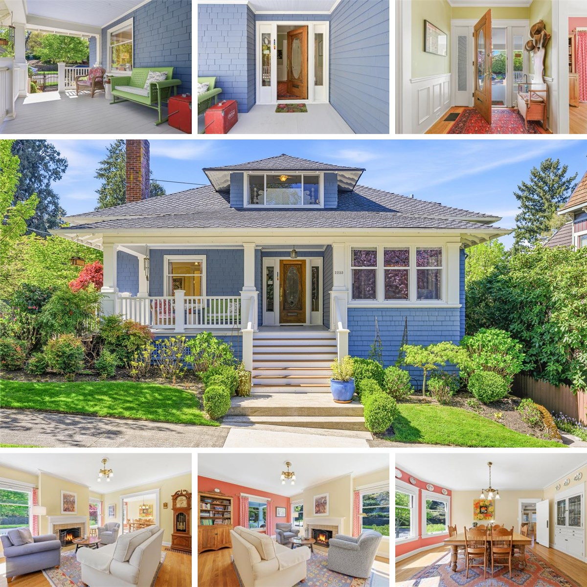 Beautifully Updated Craftsman in Sought-After Portland Heights. Nestled in one of Portland’s most desirable neighborhoods, this updated Craftsman blends timeless character with modern comfort. A classic covered front porch welcomes you into a light-filled living room with high ceilings, hardwood floors, a wood-burning fireplace, and expansive windows. The main level flows seamlessly from the living room to the formal dining area and into a spacious gourmet kitchen with a large marbled granite island, custom cabinetry, built-ins, and high-end appliances. The kitchen opens to a great room with a gas fireplace—perfect for cozy evenings or entertaining. Also on the main are 2 bedrooms with custom closets and built-ins, including an ensuite with marble flooring and a zero-entry walk-in shower with bench. A second full bathroom features marble floors, a clawfoot soaking tub, and separate shower, with main-level laundry nearby for convenience. Upstairs offers 2 spacious bedrooms, an office, and a sunroom ideal for reading or relaxing. The larger bedroom works as a primary or guest retreat, featuring French doors, a coffee/tea bar with sink, and 2 walk-in closets, while a spa-like bath includes a clawfoot soaking tub and marble tile shower. The lower level includes a family room with bar area, 1/2 bath, wine or canning storage, laundry, and space for a workshop, gym, or storage. Additional features include a detached 1-car garage, under-porch storage, and major system upgrades in 2015, including a 50-year roof, furnace/AC, plumbing, and electrical. The landscaped yard features mature plantings and multiple seating areas, creating a peaceful outdoor retreat. Located just 1 block from coveted Ainsworth Elementary school, minutes to downtown Portland, and close to hiking trails and neighborhood amenities—this is a rare Portland Heights opportunity offering charm, space, and an unbeatable location.